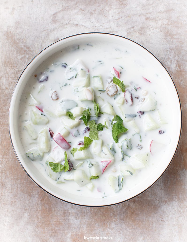 Można przygotować wcześniej, ale ogórki i rzodkiewkę dodać przed samym podaniem aby zachowały chrupkość.